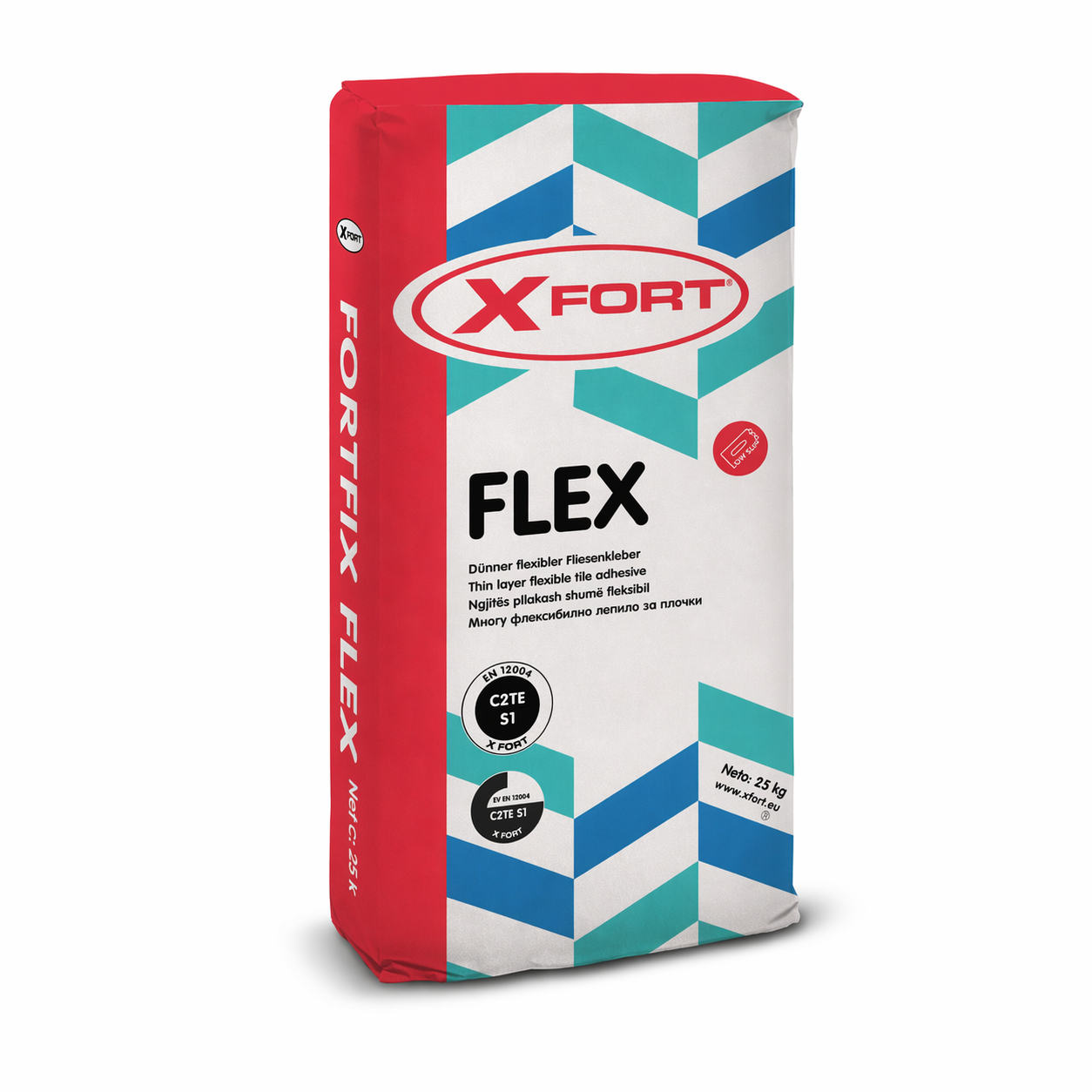 FORTFIX FLEX C2TE-S1 ist ein dünner flexibler wärmebeständiger Fliesenkleber zum Ansetzen und Verlegen von Fliesen auf Wänden und Fußböden (Terrassen, Balkone, Heizfußböden etc.) Er dient auch zur Abdeckung von Putz an den Wänden. FORTFIX FLEX C2TE-S1 ist geeignet für: Zementböden, Calciumsulfat-Böden, Zementputz, Kalkzement und Altbeton. Die Boden- bzw. Wandüberstände müssen vor der Fliesenverlegung behandelt werden. In Kellerräumen ist die Feuchtigkeit zu überprüfen. Eine zu hohe Feuchtigkeit könnte das Haftvermögen des Klebers beeinträchtigen. FORTFIX FLEX C2TE-S1 wird auf den Untergrund aufgetragen und mit einer gezahnten Spachtel so abgekämmt, dass ein vollflächiges Verkleben der Fliesen gewährleistet ist. Sofern die Anwendungszeit überschritten wird, sollte eine weitere dünne Schicht FORTFIX FLEX C2TE-S1 mit einer Zahnkelle auftragen werden, um die vorherige Schicht zu bedecken und eine Verlegung zu gewährleisten.